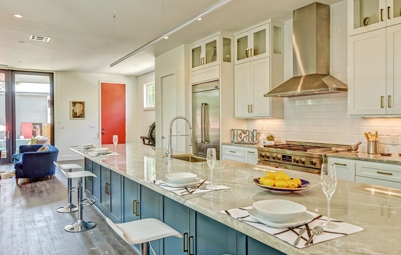 Urban Lifestyle at its Best right in The Heart of ZILKER! This beautiful 3384 sq ft modern home has 3 bedrooms, 3.5 baths with 4 outdoor decks/patios. This incredible private yard has a sprinkler system. You’ll love this kitchen with a 20′ megatron double-sided Island and TONS of cabinets. It includes a Wine Fridge, Ice Machine and HIGH END kitchen appliance with the Fridge Included. The Spa like Master bath covered in Marble is a dream and is sure to impress!